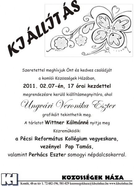 Kiállításmegnyitó 2011. 02. 07-én, 17 órai kezdettel a komlói Közösségek Házában.