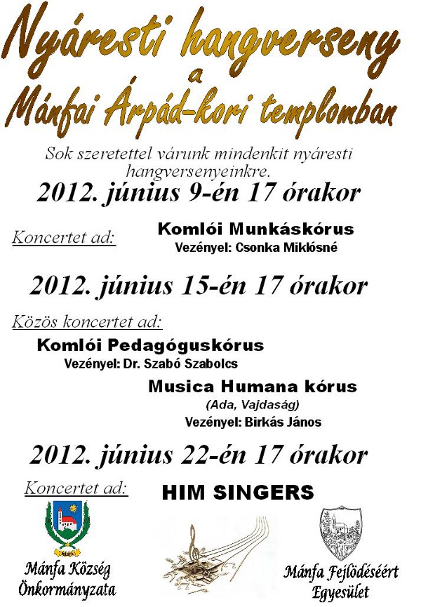 Nyáresti hangversenyek a Mánfai Árpádkori templomban -