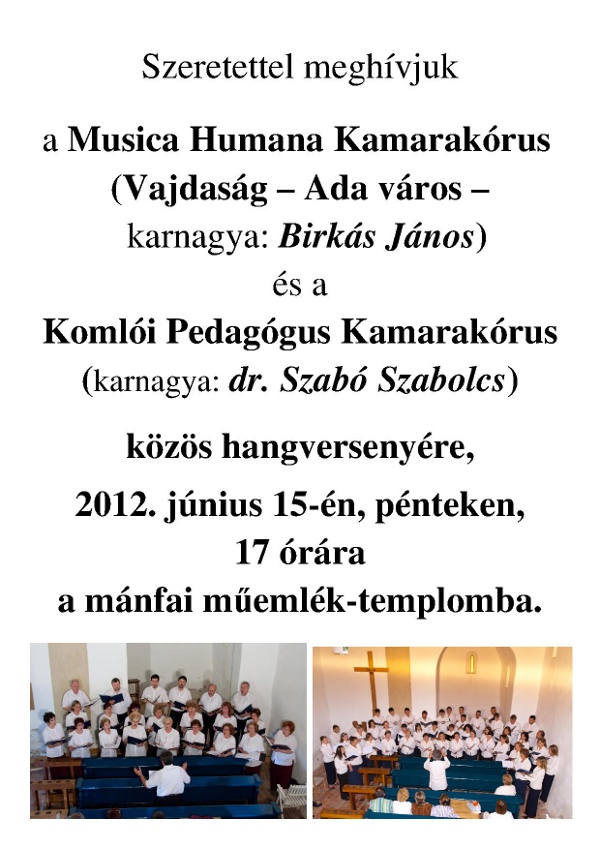 Musica Humana Kamarakórus (Vajdaság – Ada város – karnagya: Birkás János) és a