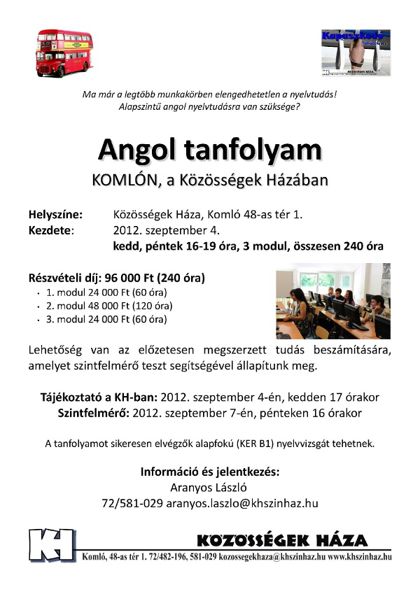 Alapfokú angol (KER B1 - hagyományos alapfokú nyelvtudásnak megfelelő) nyelvtanfolyam indul szeptembertől a Közösségek Házában.