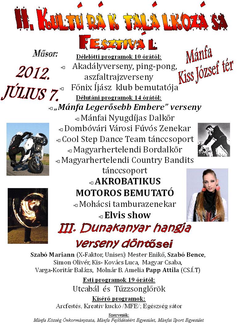 2012. Július 7-én a mánfai II. Kultúrák találkozása fesztiválra.