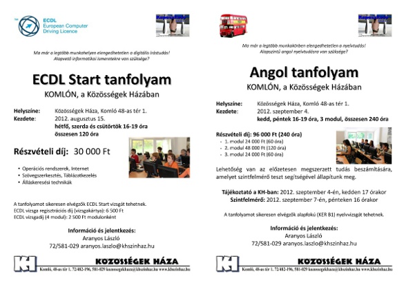 Olcsó alapfokú angol és informatika tanfolyamok Komlón.