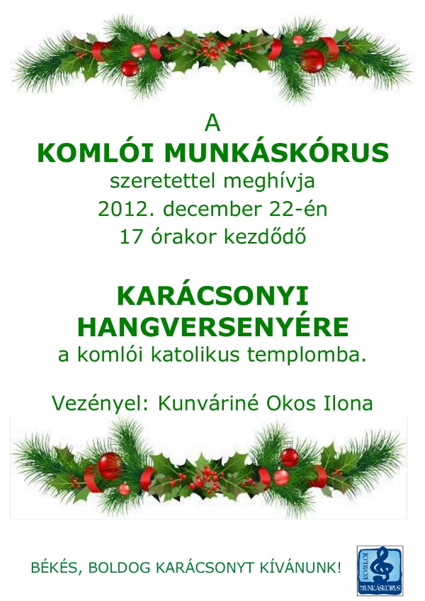 Sok szeretettel várunk a Komlói Munkáskórus karácsonyi hangversenyére