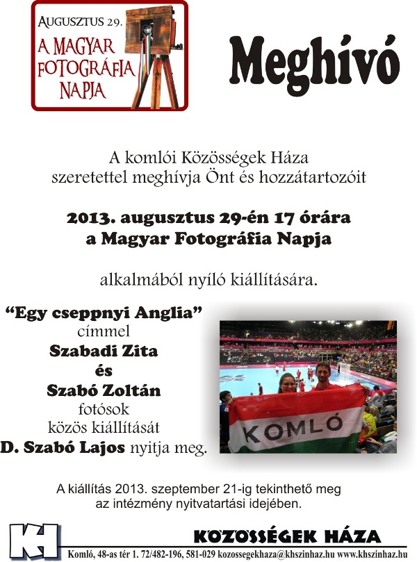 Szabadi Zita és Szabó Zoltán kiállítása a Magyar Fotográfia Napja alkalmából