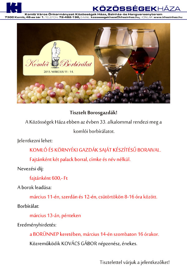 március 14. 16 óra - Borünnep