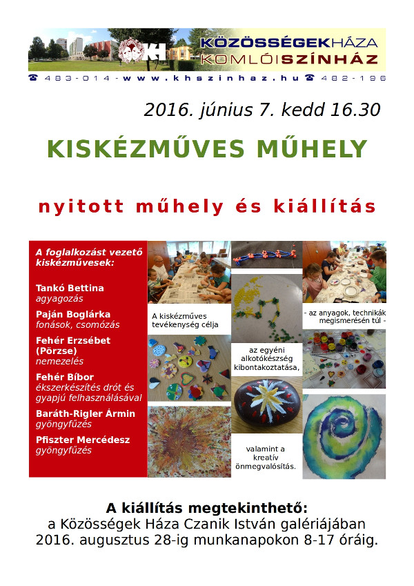 A kiskézműves műhely kiállítása a Közösségek Háza Czanik galériájában.